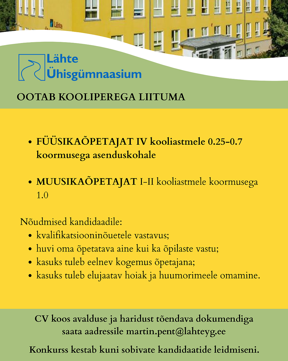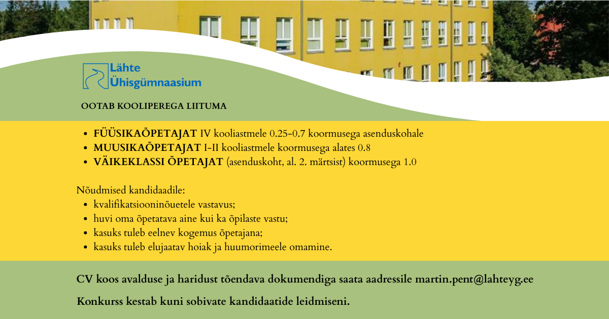 www.lahteyg.ee © 2024 Lähte Ühisgümnaasium » Õpetaja t. 8, Lähte alevik, Tartumaa, 60502